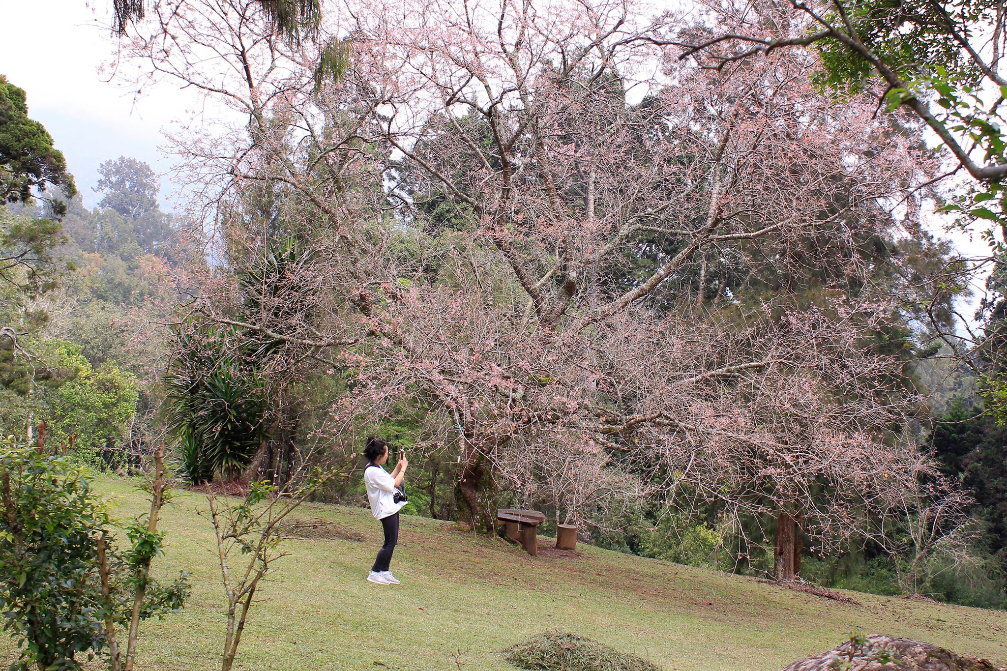 The sakura in Indonesia, specifically in Cibodas Botanical Garden really depends on the weather. Because of the climate change and unpredictable weather, it’s been several years since the sakura in Cibodas fully bloom to their potential. The flowers and petals are smaller than the ones in Japan, and much fragile so the rain can make the sakura fall down before they bloom completely. I think they also have different type of Sakura, like from Himalaya or something…